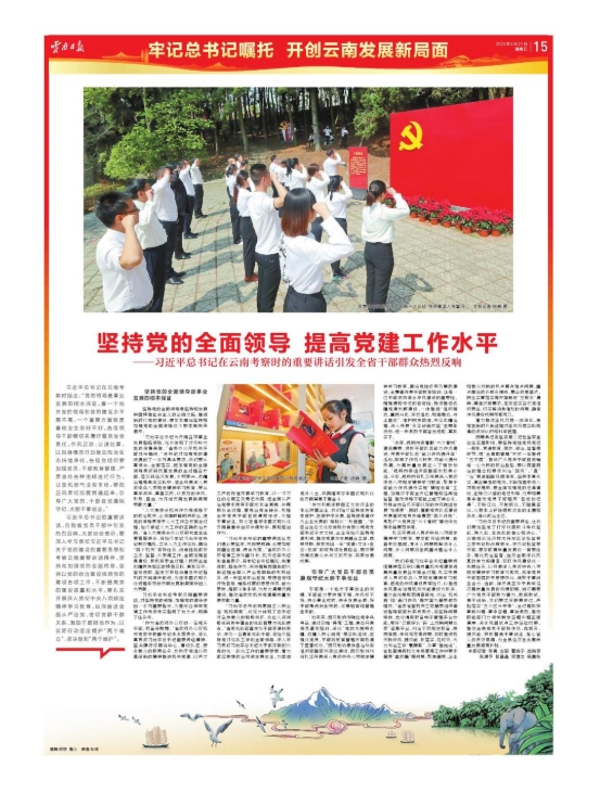 习近平总书记考察云南重要讲话,对坚持党的领导、加强党的建设作出一系列重要指示,为推动各领域党建工作走深走实指明了发力点、明确了任务书。