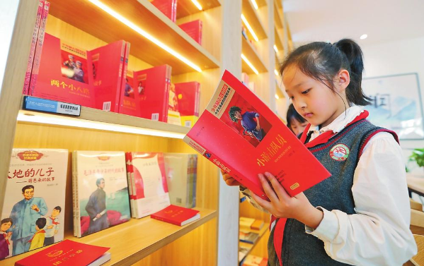 昆明春城小学学生在红色图书专柜阅读。记者杨峥 摄