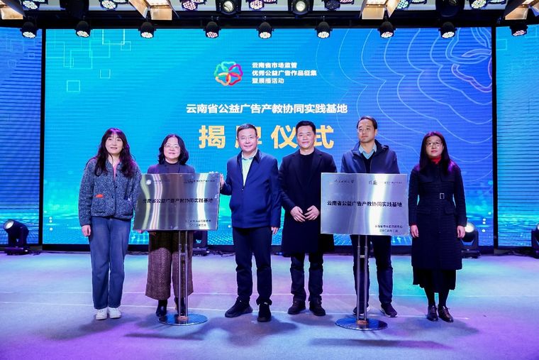 现场举行了“云南省公益广告产教协同实践基地”揭牌仪式。省市场监管局、昆明国家广告产业园、云南民族大学、昆明城市学院共同为基地揭牌,标志着云南公益广告产教融合步入深化发展新阶段,为公益广告创作注入产学研协同动能。
