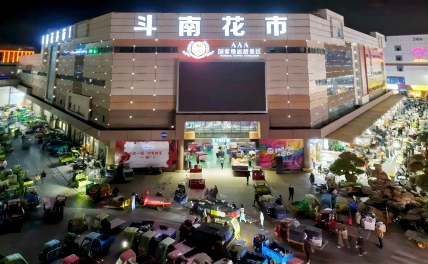 1990年,斗南村95%的农户把自家的菜地改为了花田;1992年,昆明尚义街花店里的鲜花几乎都来自斗南;1993年,斗南村里一批有志青年闯广州,把斗南的鲜花卖到了广州、上海;1995年,占地约12亩的中国第一个村级花卉市场诞生;1999年,占地56亩的全国第一个专业花卉交易市场建成,斗南逐渐形成了一个以花卉为核心的产业聚集区;2002年,中国第一个以拍卖为主的昆明花拍中心落成,斗南花卉交易进入公开透明竞价的时代……