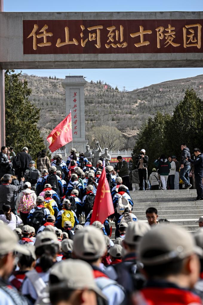 4月3日,参加徒步祭英烈活动的师生抵达位于彭阳县的任山河烈士陵园。
