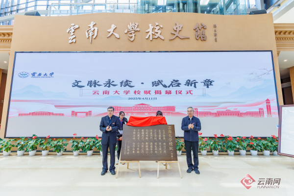 “大学巍巍,商山之隈。金碧灵毓,实生英才。洋洋管弦,俊髦群聚。秉道儒门,讲艺庠序。大辂椎轮,系维唐公。继绳廓武,后贤之功。千秋万世,日月霄冲。令闻渝溢,海西海东。”4月11日,“文脉永续・赋启新章”——《云南大学校赋》揭幕仪式在云南大学呈贡校区校史馆举行。学校师生代表齐聚一堂,共同见证这一时刻。