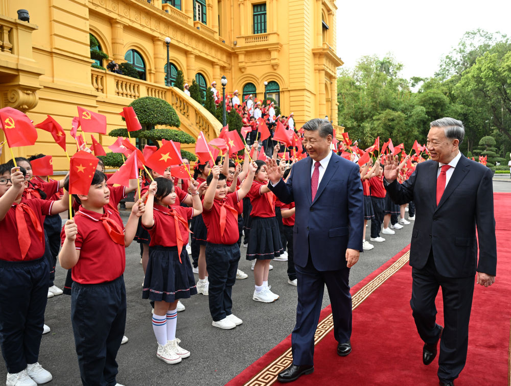 习近平总书记此次访问越南期间所到之地,从河内内排国际机场,到越南主席府、越共中央驻地,再到会见中越人民大联欢活动代表现场……人民的真挚情谊,汇成热情的海洋。