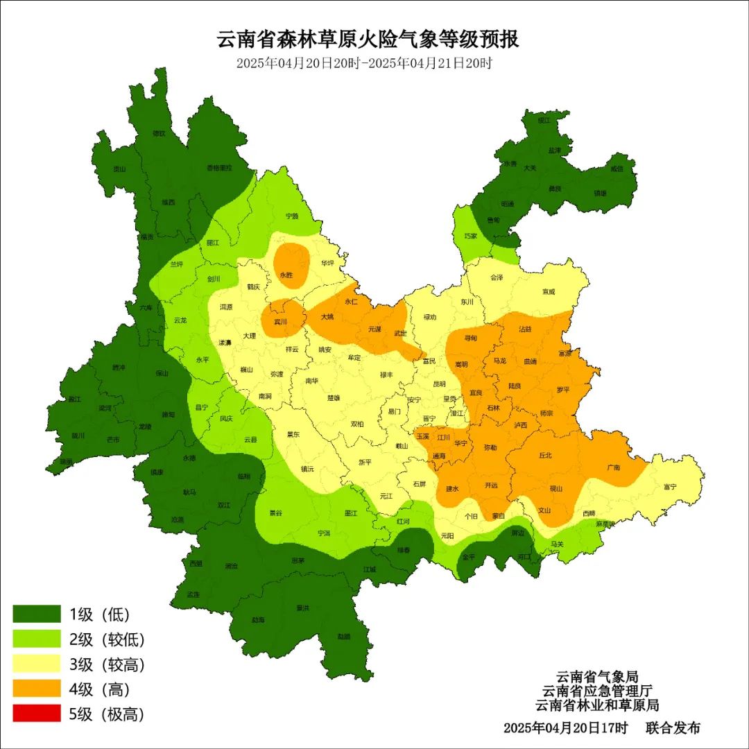 4月20日20时到4月21日20时:迪庆州、怒江州、大理州西部、保山市、德宏州、临沧市、普洱市、西双版纳州、红河州西部、文山州南部、玉溪市西部、曲靖市北部、昭通市多云有阵雨局部中雨、大雨,其他地区晴间多云。
