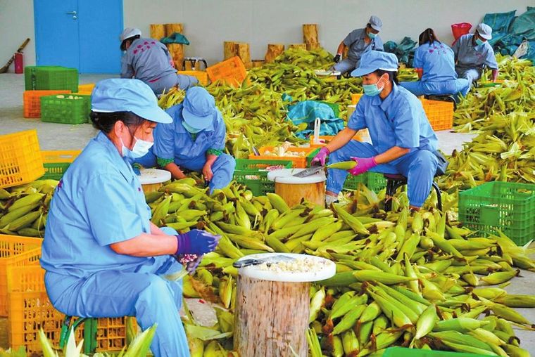 工人分拣西双版纳小糯玉米。
