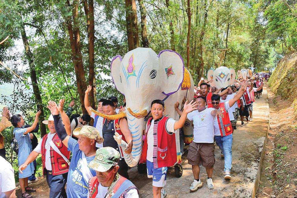 民族文化游演方队走村串寨举行“贡象”仪式