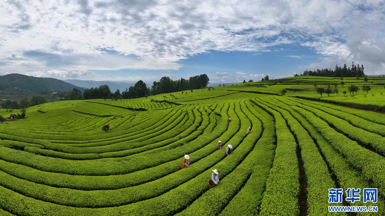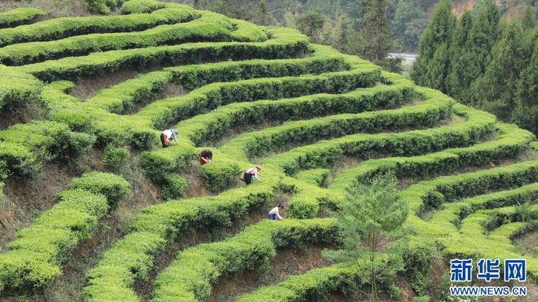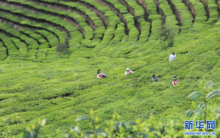 4月17日,茶农在云南省腾冲市团田乡小丙弄村采摘春茶。新华网发(龚祖金 摄)