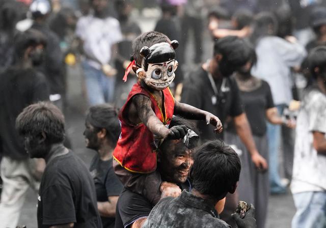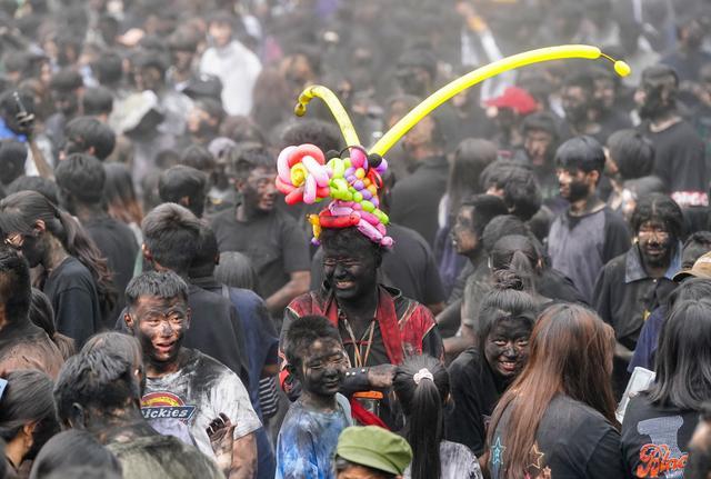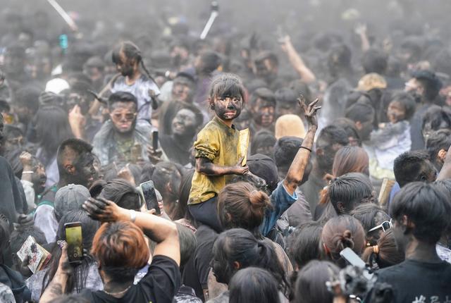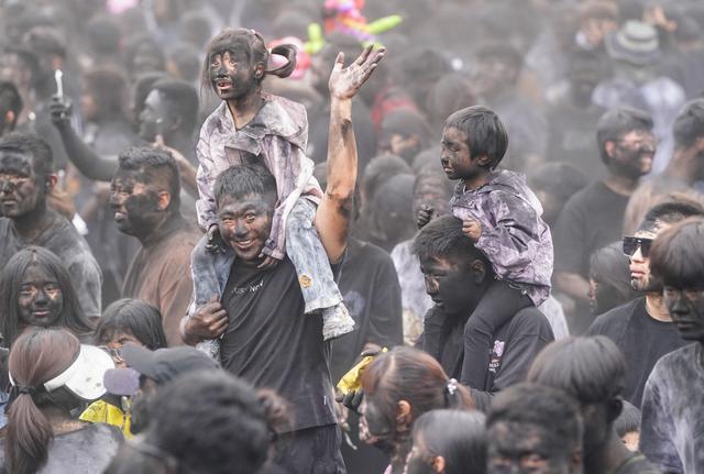 当日,“抹黑脸”狂欢活动在云南省普洱市墨江哈尼族自治县太阳广场举行,当地群众与各地游客通过相互涂抹黑脸的方式互致祝福,这一传统民俗活动承载着人们对美好生活的期许。