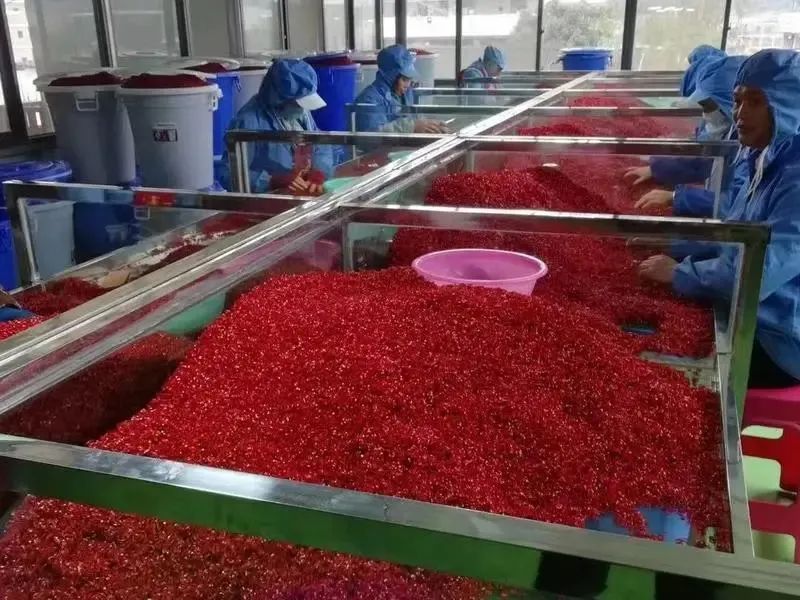 “丘北辣椒”及其深加工产品不断拓展市场,实现产业链延伸和价值提升,大幅提高农产品附加值。车间投产以来,直接带动农民订单增收超1000万元,带动就业增收超150万元。