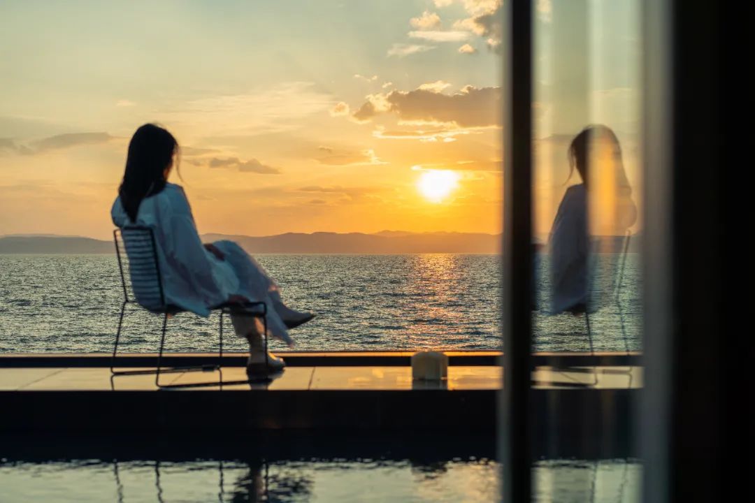在这里,还可以拍摄一组逆光剪影大片,站在落地窗前,让阳光勾勒出身体轮廓,手持咖啡杯或一本书,拍摄一组与海景或落日共舞的剪影大片。