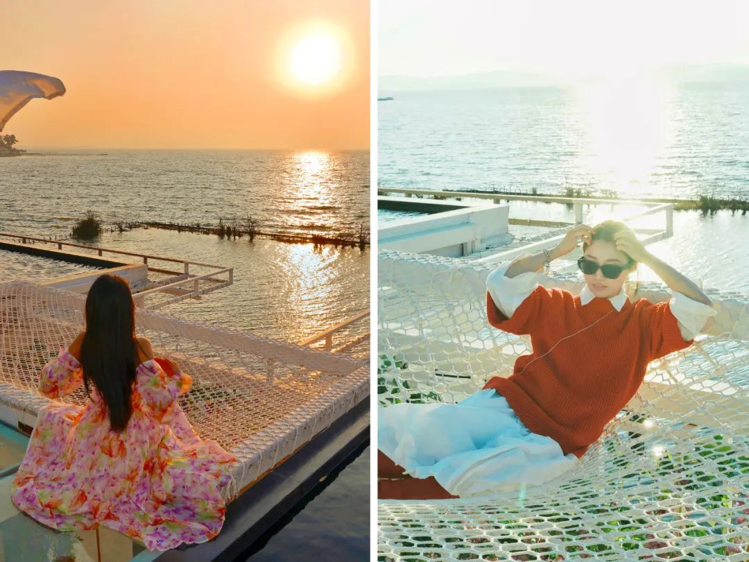 安全网打卡:背靠滇池躺平吧,让整片蔚蓝在你的镜头里当背景板~还可以抱上房间里的被子,不用担心,安全感满满出海景大片~