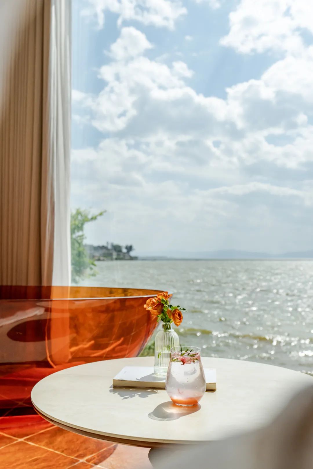 山隐筑,昆明第一家海景民宿,滇池最美日落打卡点!民宿将滇池自然风光与现代美学设计完美融合,落地窗外便是波光粼粼的湖面,红嘴鸥掠过水面时,仿佛能听见浪花与风的私语。