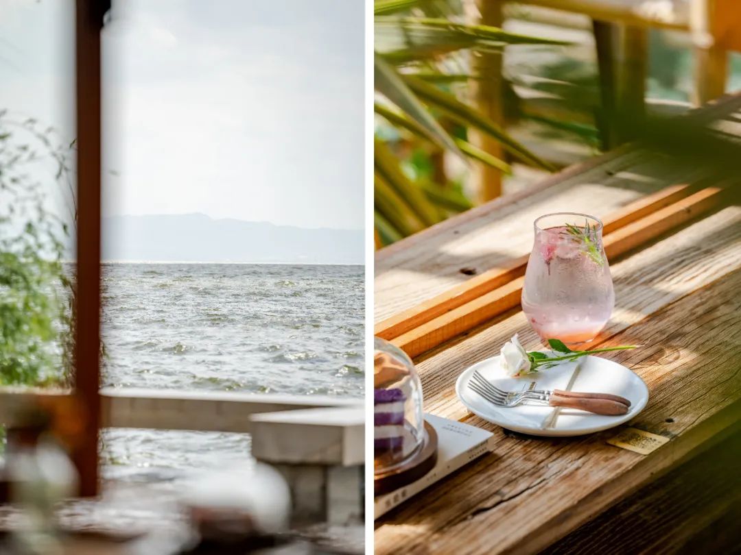 靠海的窗边区域,无疑是整间咖啡馆的灵魂所在,推开窗户,将无垠的滇池尽收眼底,在这里,仿佛时间也随之慢了下来。