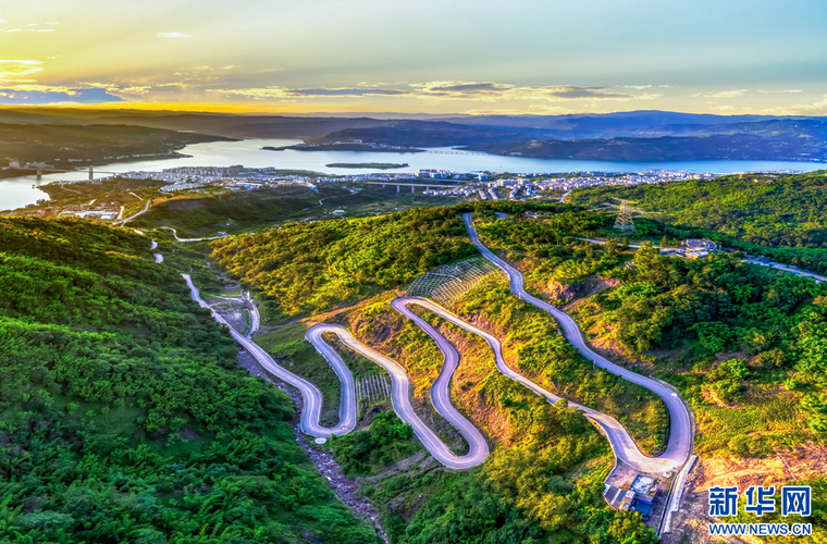 夕阳映照下蜿蜒山间的乡村公路(5月2日摄)。新华网发(曾三东 摄)