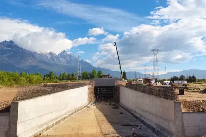 5月4日,丽江古城至宁蒗高速公路项目土建二分部玉峰路下穿通道主体工程全部浇筑完成。玉峰路下穿通道为地方道路玉峰路下穿古宁高速主线而设置,全长214.51米,其中暗埋段全长41.03米,敞开段全长173.48米,最大挖深约8米,设计为双向两车道,设计时速40公里。