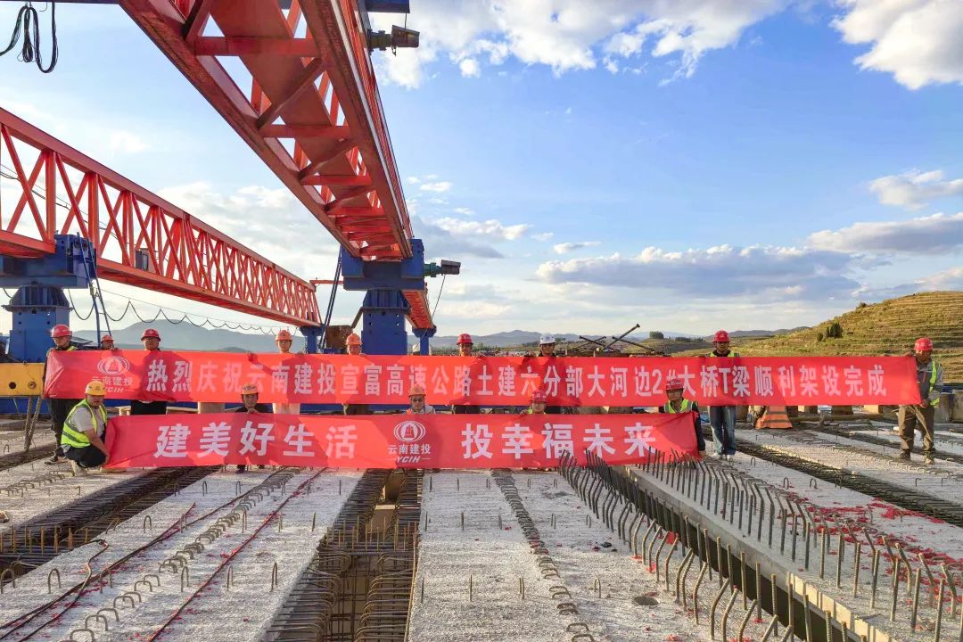 5月4日,宣威至富源高速公路项目大河边2号大桥全部T梁顺利完成架设,桥梁主体施工取得重要进展。大河边2号大桥全长756.08米,设计30米T梁250片。