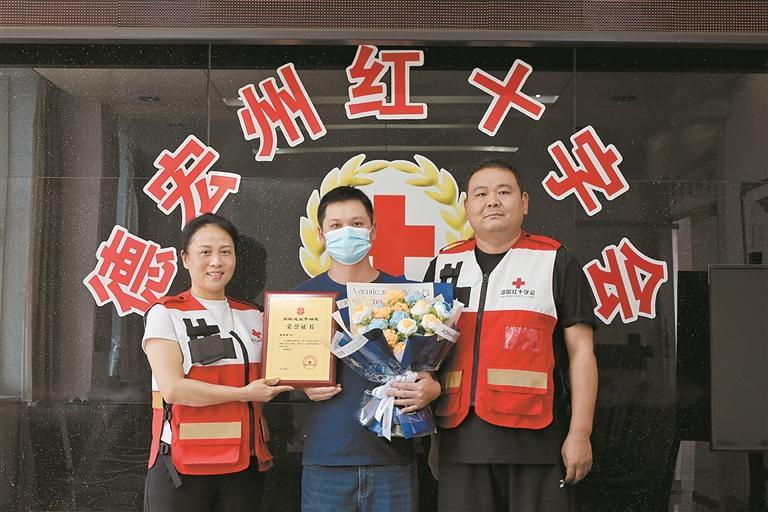 本报讯(德宏融媒记者曹园雅 通讯员车治民 文/图)5月9日,德宏州红十字会举办了一场简单却隆重的欢迎仪式,迎接小健(化名)在昆明某医院顺利完成造血干细胞捐献后返回德宏,他捐献的“生命种子”将为一名省外3岁血液病患儿点燃重生的希望。