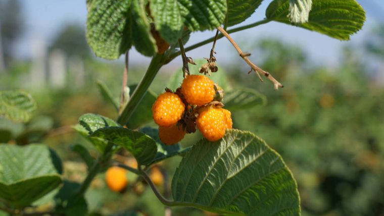 黄泡学名悬钩子,又叫黄锁莓,多生长在海拔1000米至3000米阳光充足的地方。其全身都是宝,果实、种子、根和叶均可入药,具有清热解毒的功效,还可采摘来制作果酒果醋。黄泡曾是云南山区常见的野生浆果,但因浑身倒刺难以采摘,逐渐淡出人们的视野。如今通过品种改良,无刺黄泡既保留了野生果实的浓郁风味,又实现了规模化种植。让许多云南人儿时记忆里的酸甜滋味变得触手可及。
