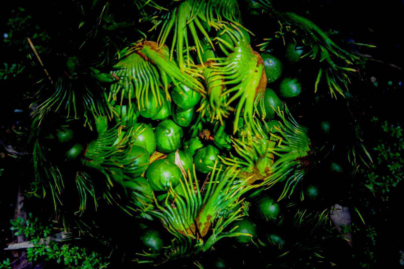 近日,摄影爱好者在云南省红河哈尼族彝族自治州金平苗族瑶族傣族自治县马鞍底乡境内的红河蝴蝶谷拍摄到国家一级保护植物——野生苏铁。