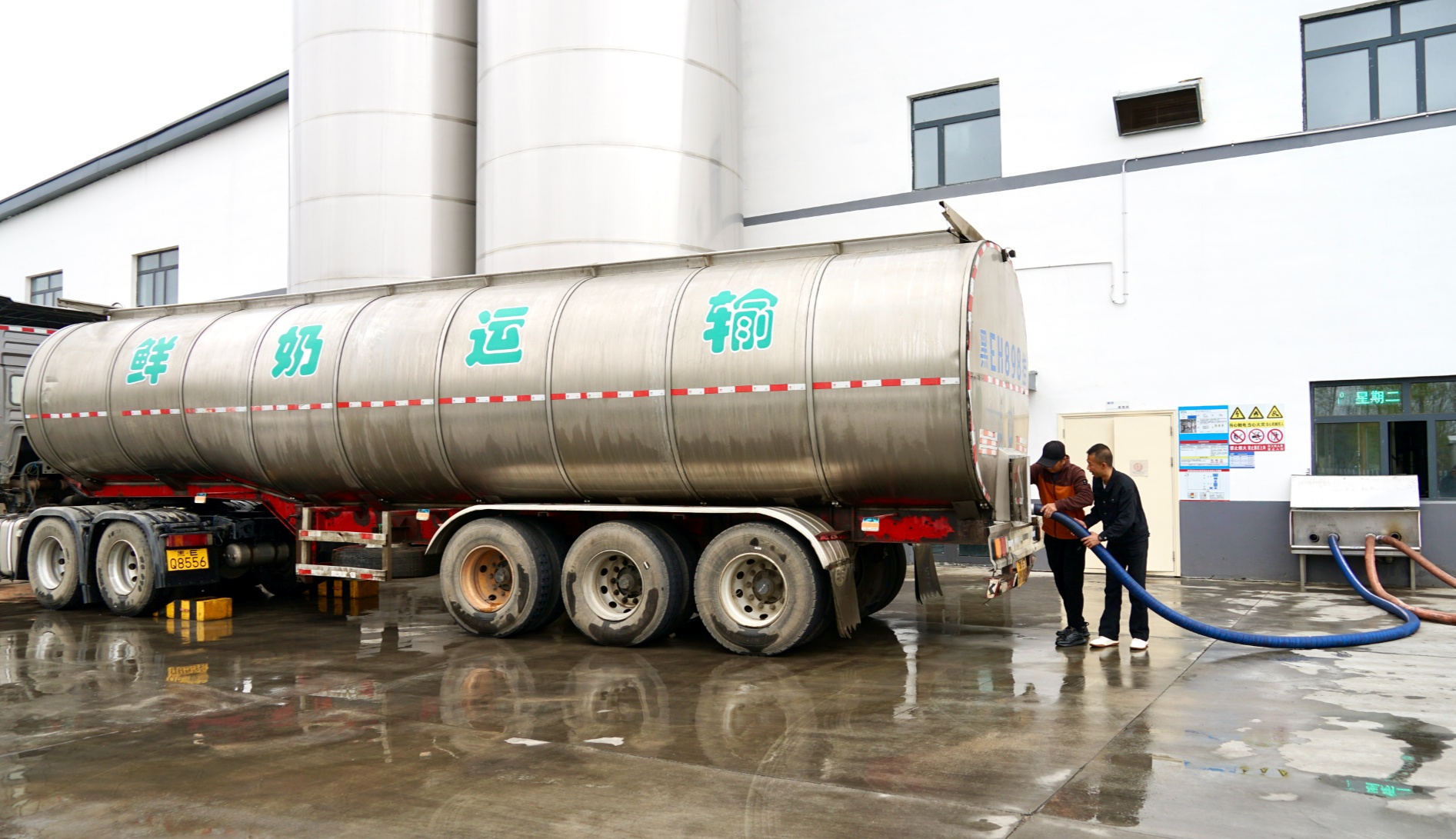 运输车正在厂区卸奶(央广网记者 张瀚予 摄)