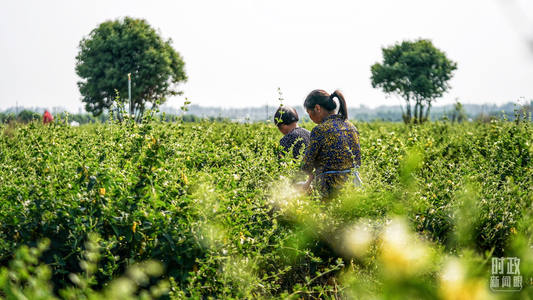 △五月,河南农民采摘金银花。(总台国广记者李晋拍摄)
