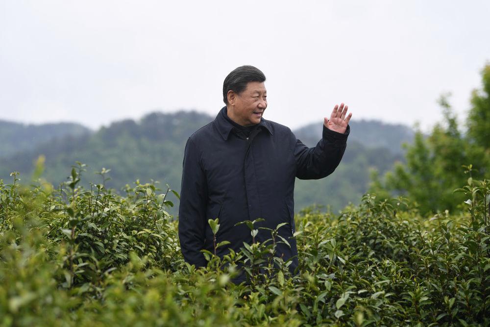 2020年4月21日,习近平总书记来到陕西安康市平利县老县镇,在茶园考察脱贫攻坚情况。新华社记者 燕雁 摄
