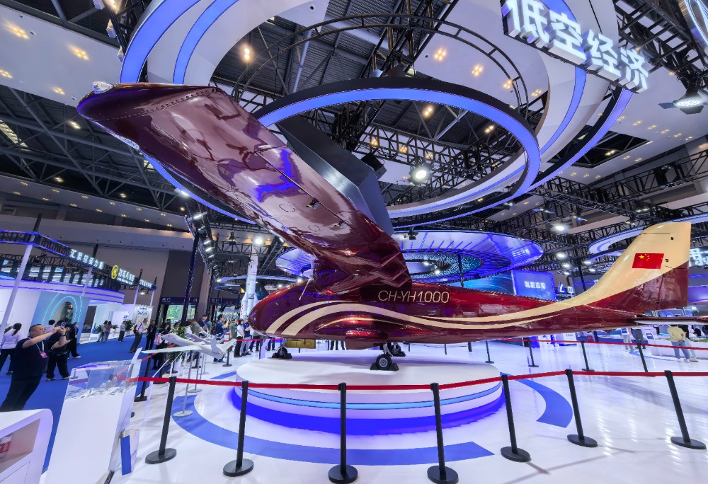 ▲重庆国际博览中心,第七届中国西部国际投资贸易洽谈会现场,中央大厅展出的CH-YH1000无人运输机吸引观众驻足欣赏。记者 龙帆 摄/视觉重庆