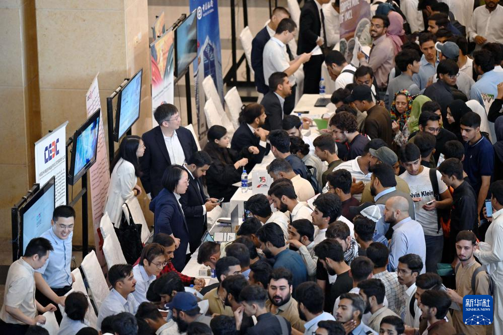 5月27日,人们在巴基斯坦首都伊斯兰堡参加中资企业高校毕业生招聘会。新华社发(艾哈迈德·卡迈勒摄)