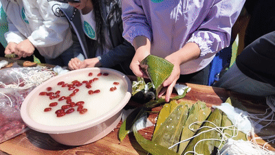 在湖南张家界黄龙洞景区生态广场,60多名来自印度尼西亚的游客兴致勃勃地参加了“端午佳节·‘粽’情相约”民俗体验活动。在景区工作人员指导下,印尼游客从选粽叶、折粽叶、填充糯米到捆扎,学得有模有样。印度尼西亚游客魏琳开心地告诉记者,“在这边非常高兴可以体会到自己做粽子,学习怎么捆,怎么包扎的感觉。包粽子这个活动,为我的旅游行程增添欢乐和温暖。”