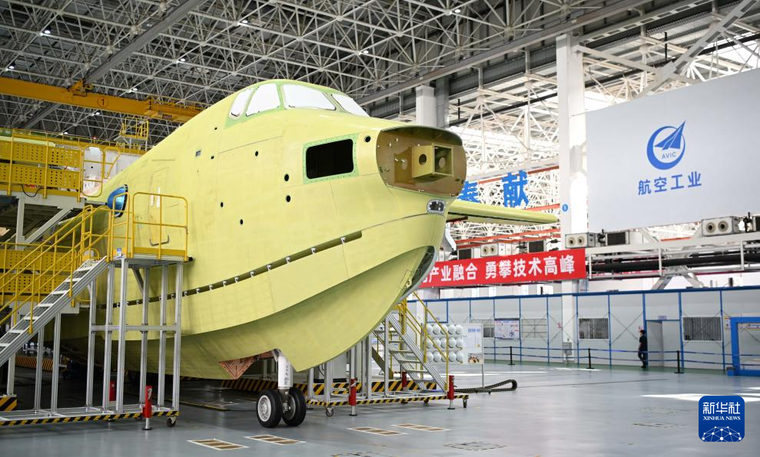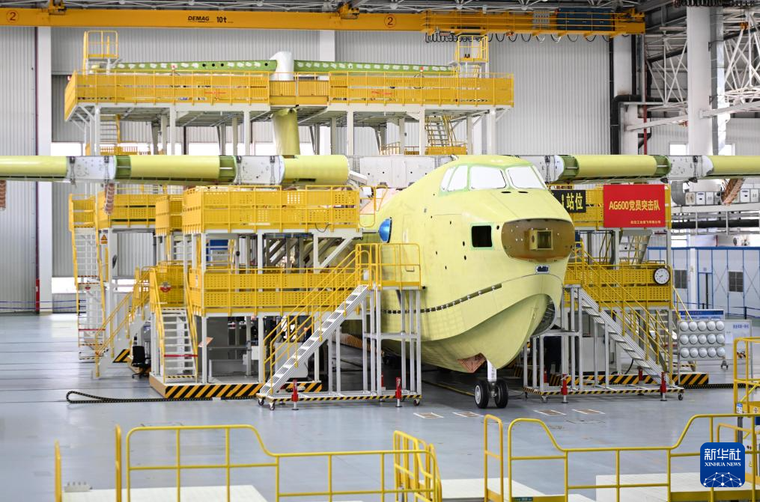 6月11日在珠海中航通飞华南飞机工业有限公司拍摄的AG600总装线。 新华社记者 邓华 摄