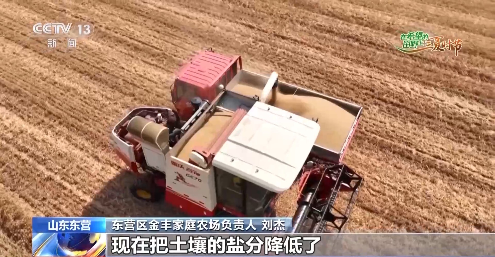 东营区金丰家庭农场负责人 刘杰:以前这里的盐碱度程度很高,白茫茫的一片,主要种植就是耐盐碱作物棉花。通过高标准农田建设,以大水漫灌压碱、深挖排碱沟排碱、下渗管排碱一系列措施把土壤的盐分降低了。现在,小麦都能种植了。今年主要种植了4300多亩小麦,小麦颗粒饱满都非常好,预计今年小麦产量每亩超1000斤。
