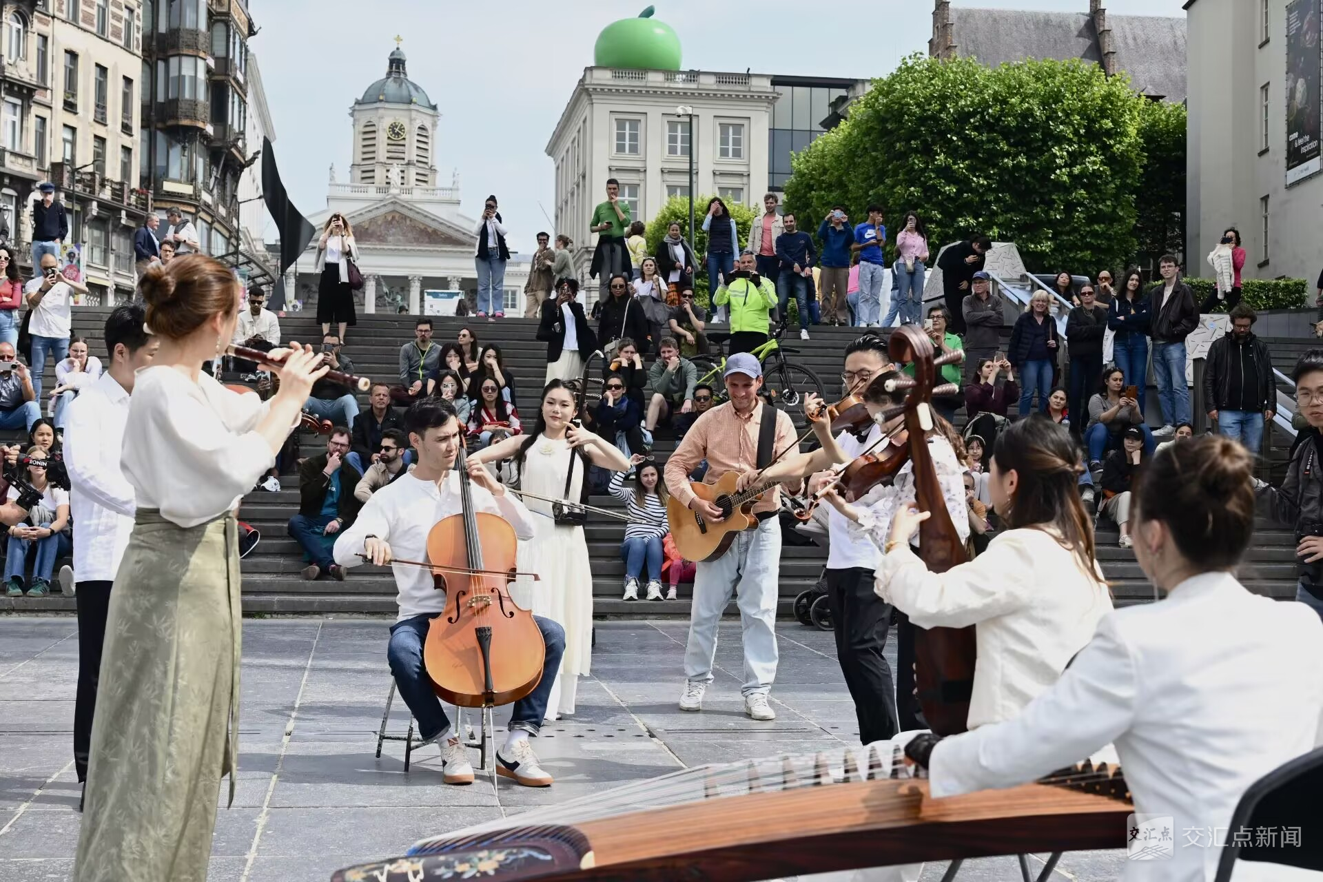 6月9日下午,一场快闪活动奏响了“文明遇·鉴:中国大运河文化江苏周”序曲。在布鲁塞尔艺术山上,江苏民乐《好一朵茉莉花》和惊艳的锡剧戏服起舞,引得当地市民和游客驻足围观。在布鲁塞尔标志性大广场上,来自江苏大运河畔的旖旎苏绣,让欧洲民众沉浸式体验了江苏非遗的独特魅力。