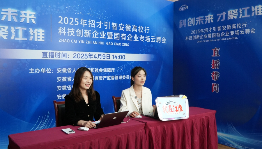 2025年招才引智安徽高校行科技创新企业暨国有企业专场云聘会直播间。(安徽省人才综合服务中心供图)