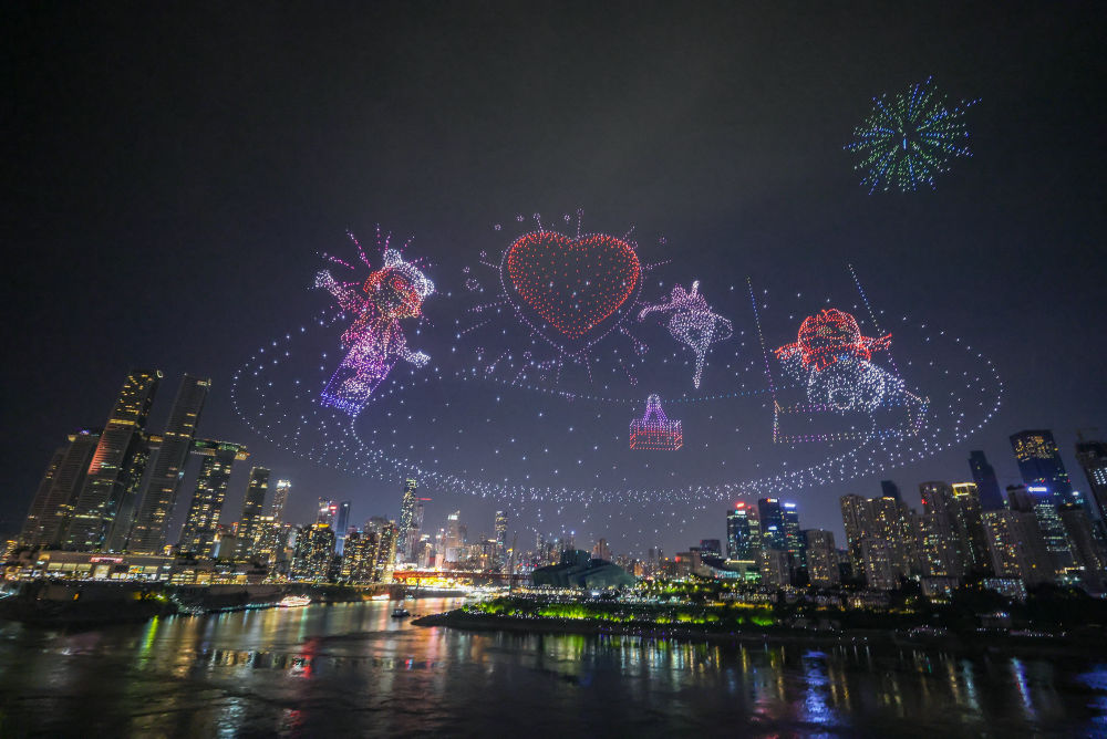 无人机灯光秀是重庆人新的骄傲。