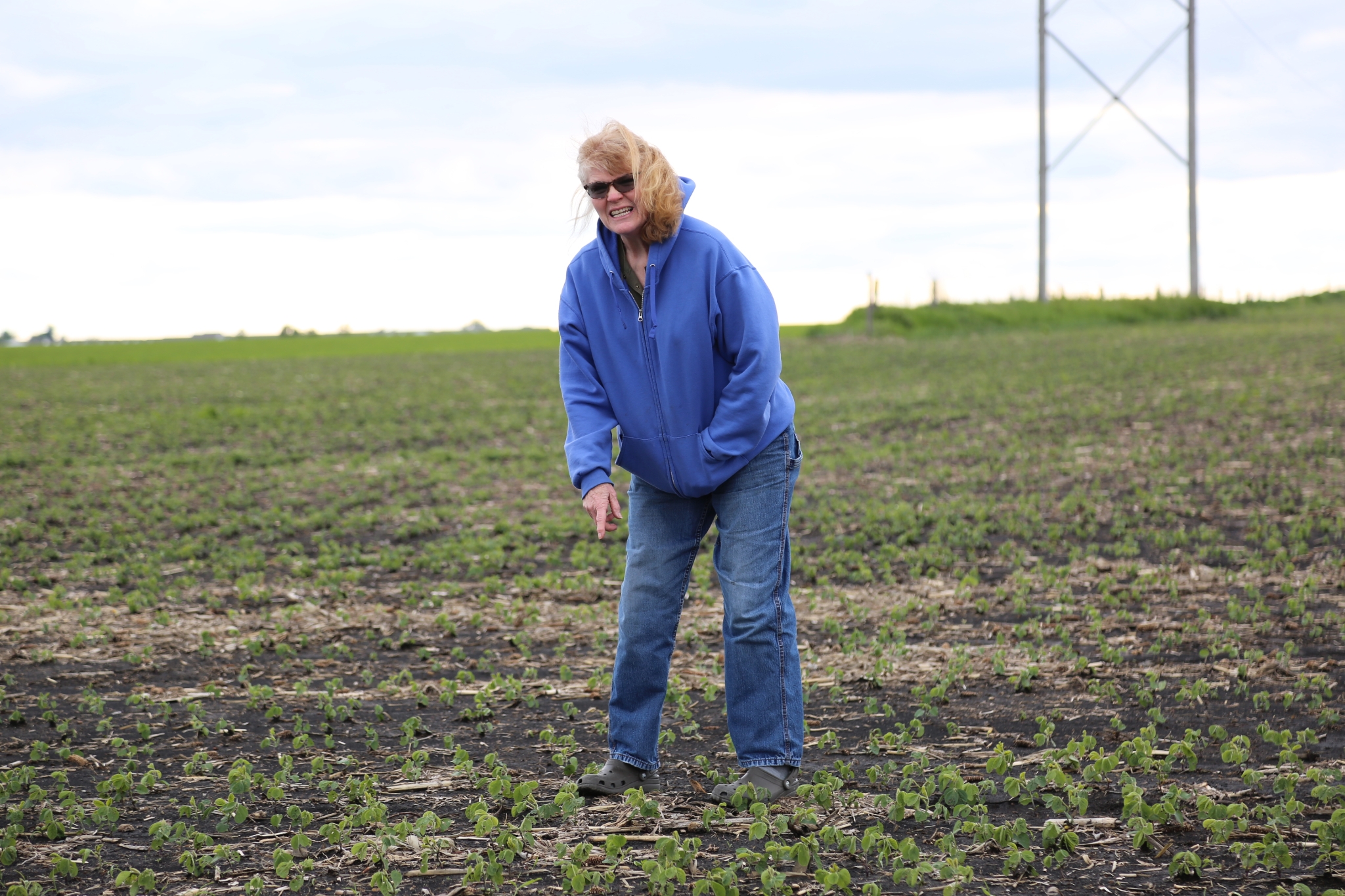 5月21日,拉文·格里菲恩在查看自家大豆的长势