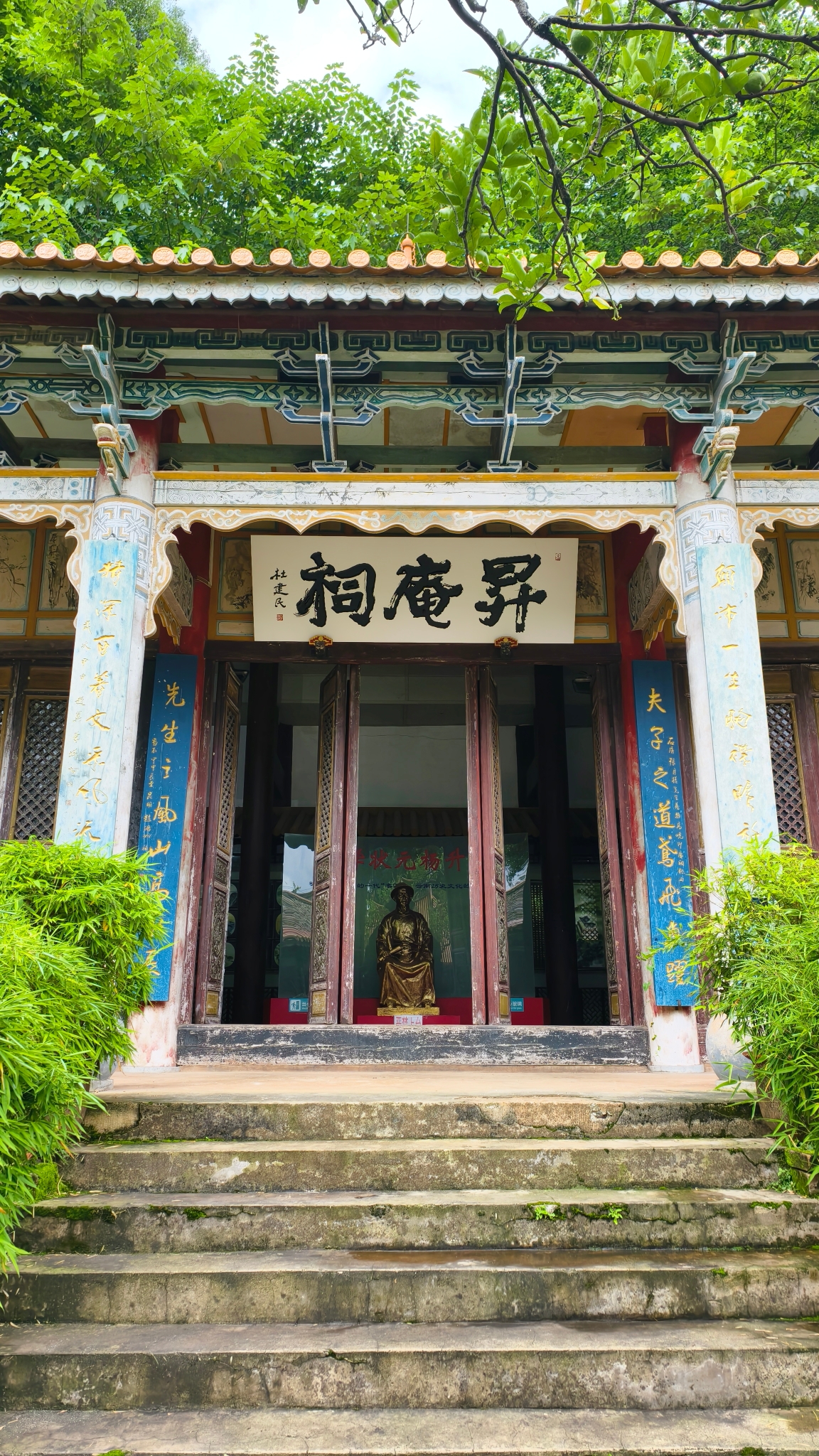 升庵祠作为纪念明代大儒杨慎的核心场所,现存建筑群始建于1987年。此次更换的主匾“升庵祠”三字,采用传统杉木底胎配合金漆阴刻工艺,单字尺寸达80×60厘米,多用颜体楷书、篆书、隶书等书体,显得庄重大气,浑厚博雅,书体特性力求 与升庵祠氛围形成呼应。杜建民介绍:“新匾创作历时两个月,我们查阅了杨慎在滇期间的书法真迹,最终选定浑厚博雅的颜体风格,既体现升庵先生'贬谪不移'的气节,引其‘天气常如二三月’的诗意哲思,又契合滇中建筑的大气格局。”