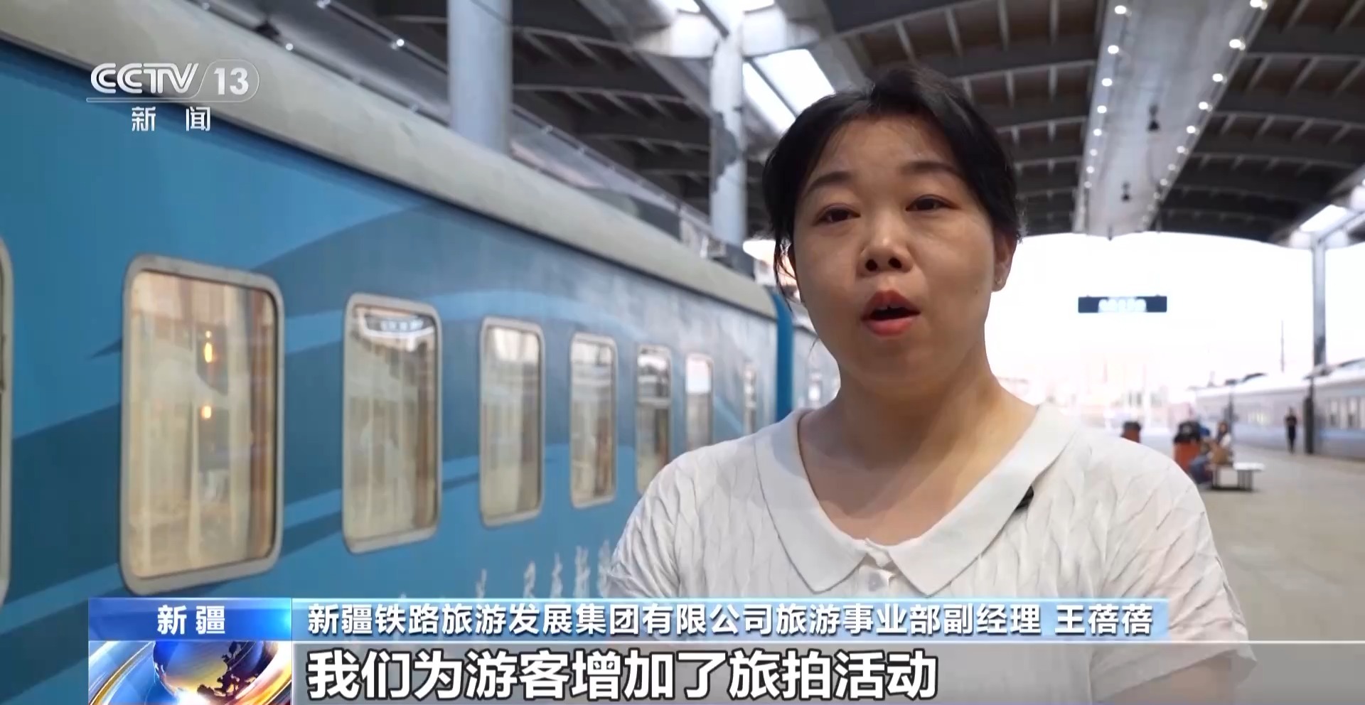 新疆铁路旅游发展集团有限公司旅游事业部副经理 王蓓蓓:我们为游客增加了旅拍活动,同时为过生日的游客准备了贺卡,在列车上为游客庆生,让游客领略壮美风光的同时,感受到家一样的温暖。