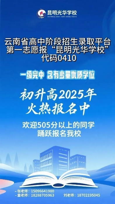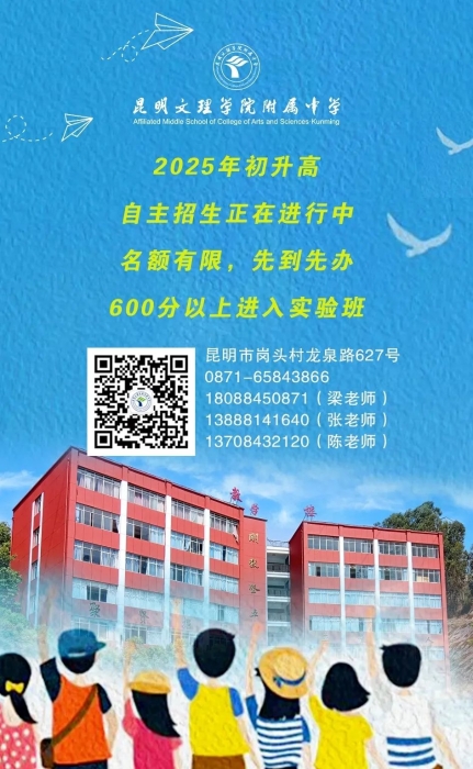 1.2025年昆明市主城区及郊县学籍中考考生,未被任何一所普通高中录取,中考成绩达490分及以上。