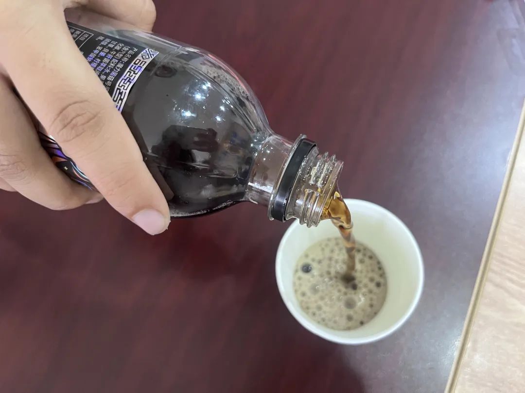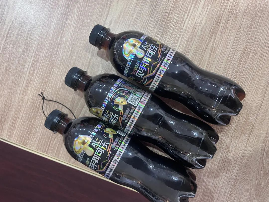 7月30日,记者见到了这款神秘的新产品。从外观看与平时喝的可乐区别不大,瓶身贴着一层包装纸,上面印着几朵菌子,周围还用五颜六色的线条勾勒出一种魔幻的感觉。打开瓶盖,闻起来有浓浓的生菌子味,但喝着菌子味较淡,混合着可乐味,口感偏甜。