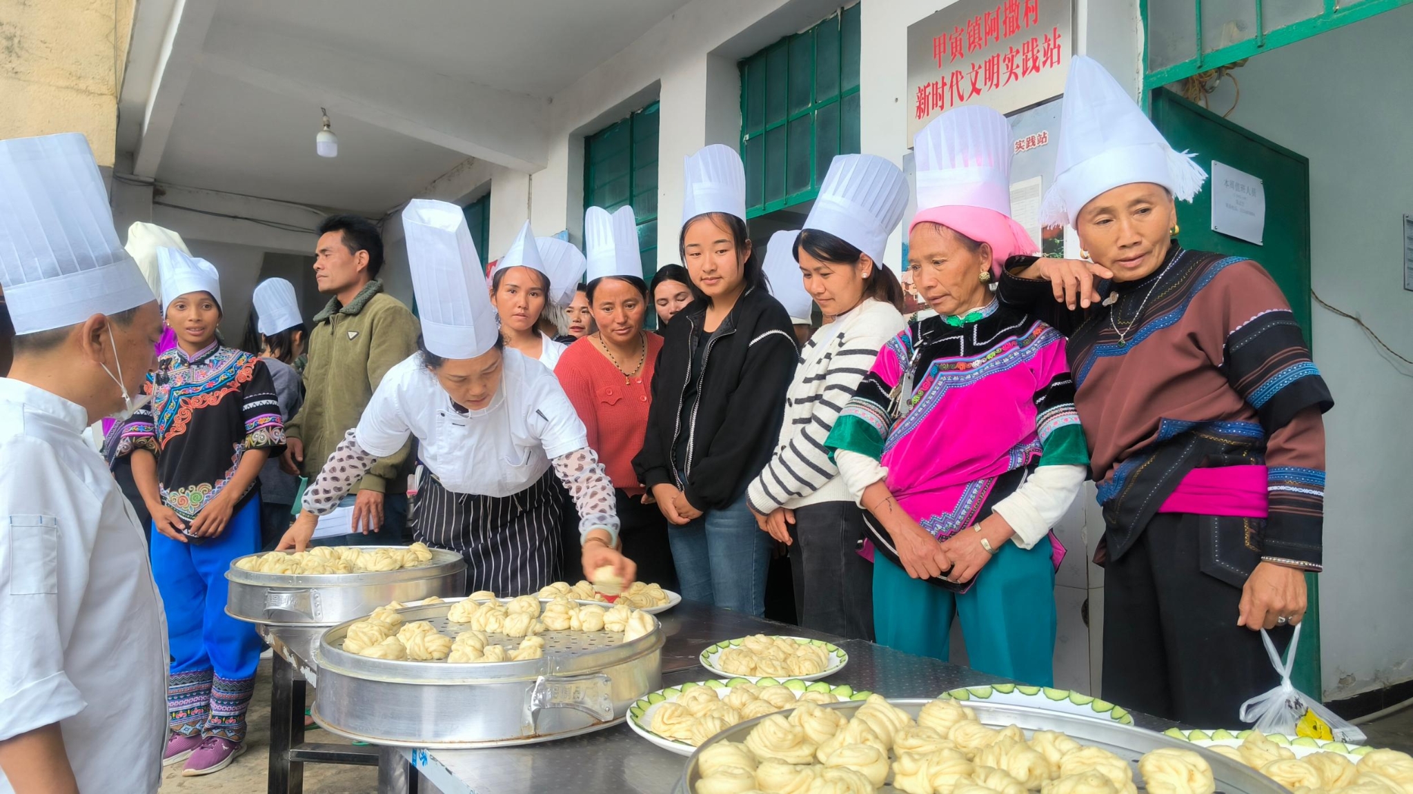 “清水要分次倒进面盆,边倒边用筷子搅成絮状……”日前,在红河哈尼族彝族自治州红河县甲寅镇阿撒村委会开展的手拉面制作培训班里,60名少数民族群众正围在矮桌拼成的案板旁,在讲师和本村班主任的辅导下,学习馒头、烩面、花式面点的制作流程。手把手的教授不仅让本地村民迅速掌握了技艺,更点燃了不少人的创业热情。