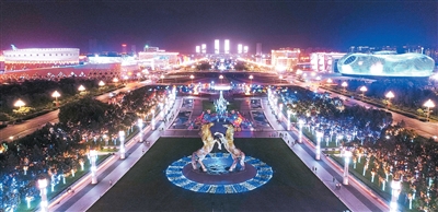 康巴什区城市中轴线夜景。