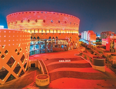 鄂尔多斯大剧院夜景。