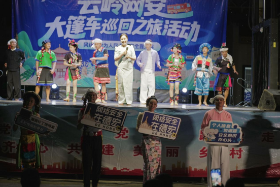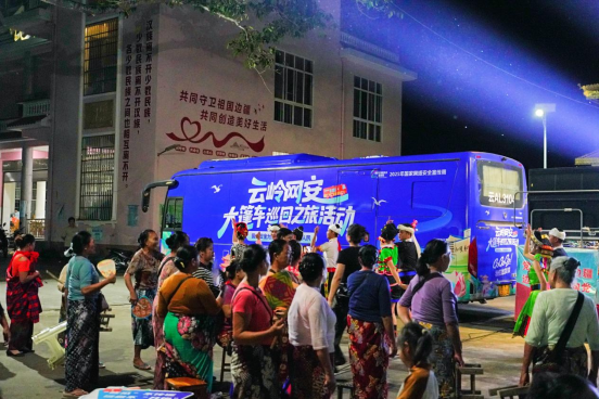聚拢一群人,宣传一件事。8月31日傍晚,“云岭网安大篷车”来到了瑞丽市姐相镇俄罗村,通过双语宣讲、游戏互动、文艺表演等形式,在这个以傣族为主体聚居的边境村寨开展了一场以“网络安全”为主题的坝坝会。村民们自发从家中带着小板凳来到活动现场,近距离感受和学习网络安全知识和防护技能。