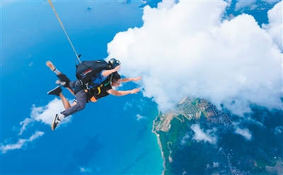 游客在神州半岛体验高空跳伞。万宁市委宣传部供图