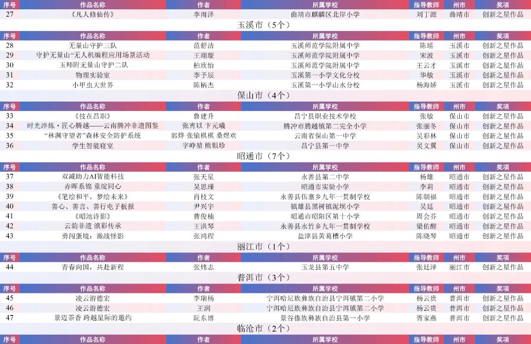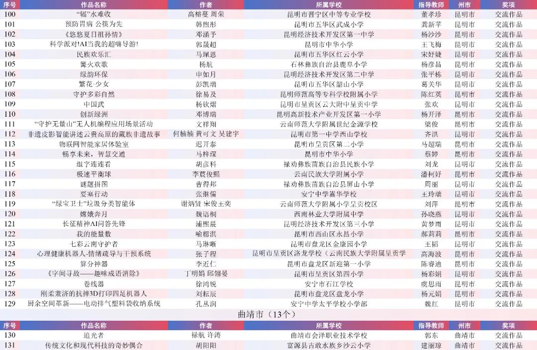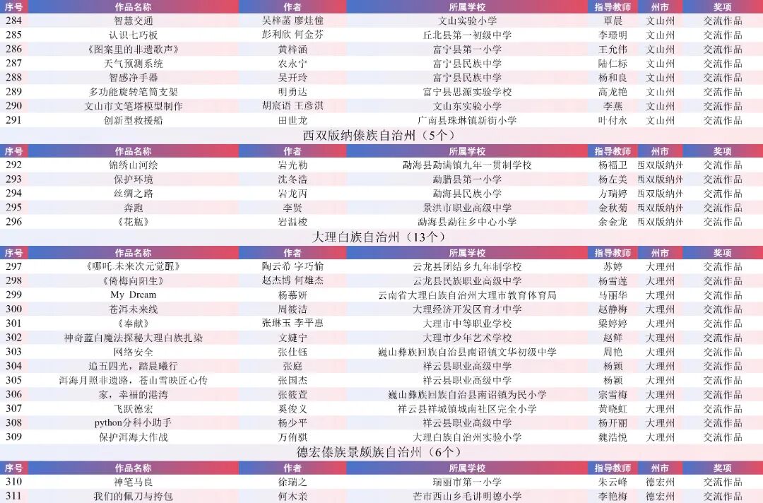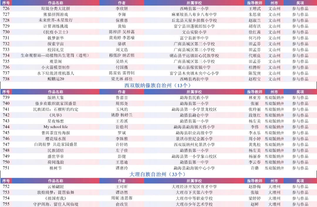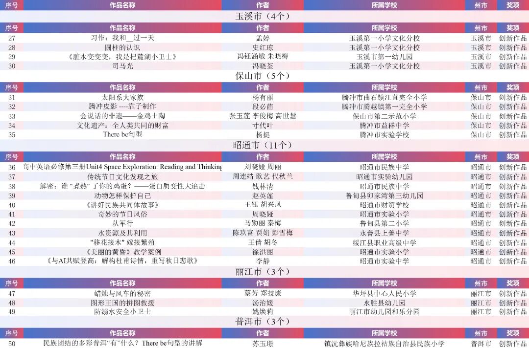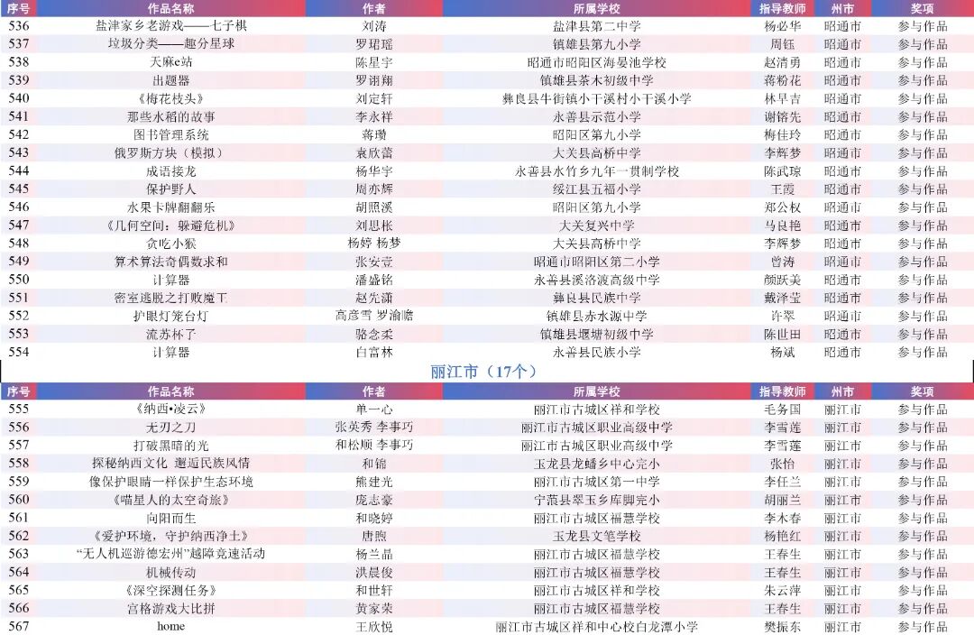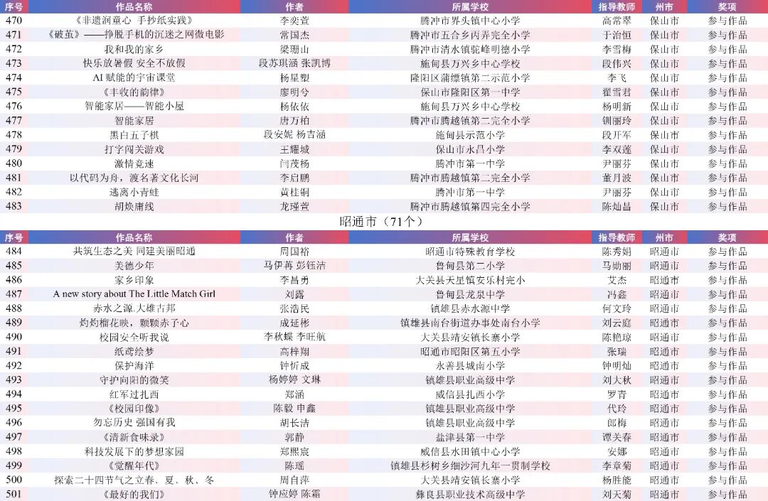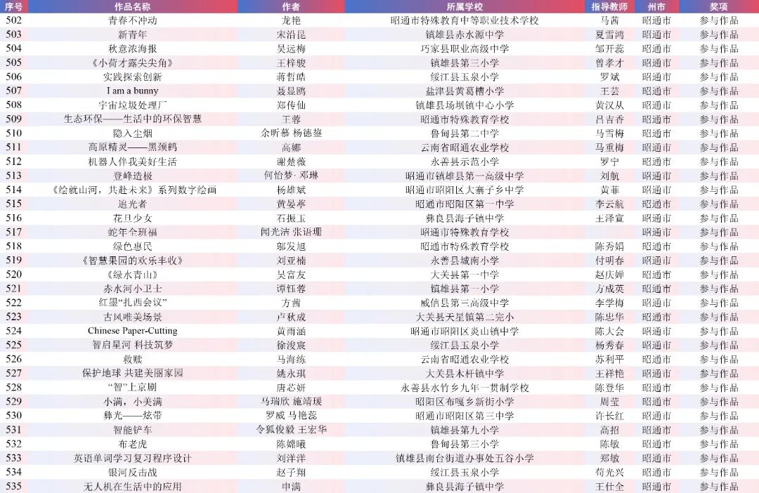 9月15日,云南省教育厅公示了“2025年云南省师生数字素养提升实践活动交流展示名单”。经各州市推荐,专家线上遴选、线下集中复审等,共推荐出教师活动80件创新作品、240件典型作品、480件研讨作品;学生活动80件创新之星作品、240件交流作品、480件参与作品。现将名单予以公示。