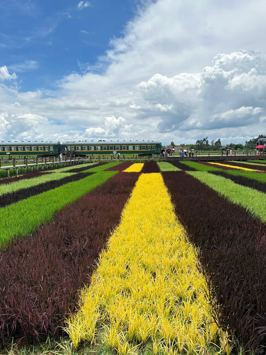 更令人惊喜的,是稻田中央竟静静卧着一列六节的绿皮火车。车厢已被改成了咖啡馆和民宿。坐在窗边,手捧一杯咖啡,窗外是无边的稻浪和更远处的滇池,时光在此变得更舒缓、更深情了。