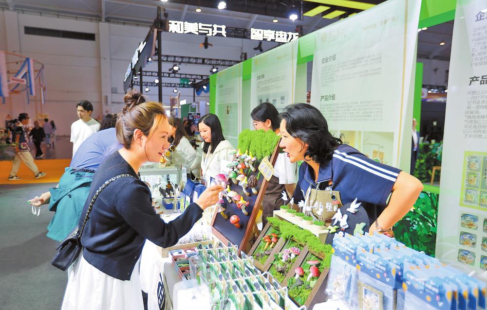 市民在昆明专题馆内选购面塑野生菌冰箱贴。 本报记者 陈飞 高吴双 摄