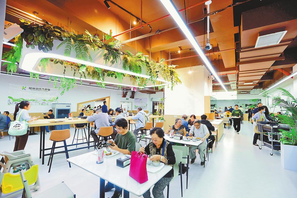 日前,昆明地铁大食堂首家城市食堂在昆明地铁火车北站开业,整洁的环境与智能化就餐系统给人们带来良好的就餐体验,10元两荤两素的惠民套餐受到欢迎。未来2年,这样的便民食堂将覆盖昆明主城区,让更多市民享受到“地铁+民生”的服务便利。本报记者 高吴双 摄
