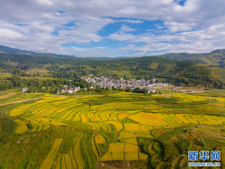 在洱源县右所镇拍摄的稻田(摄于9月20日)。新华网发(罗新才 摄)