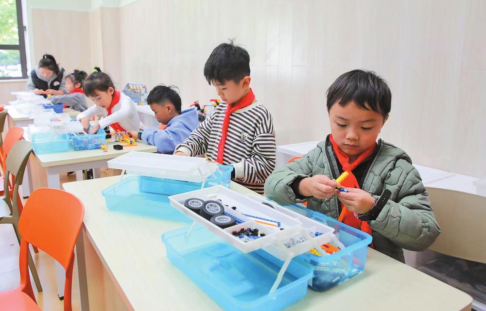 同学们在上科创兴趣课程。